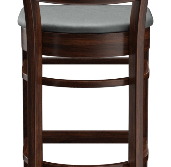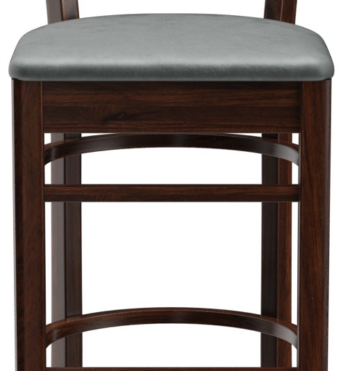 Ein typisches Trattoria-Sitzmöbel ist das Modell Ute durch die sich nach unten verjüngende Sprossenrückenlehne - als Stuhl und Barhocker verfügbar. Ute ist in Hevea-Holz in der Farbe Nussbaum erhältlich. Der Polstersitz aus dem Kunstleder Casual steht in drei Farben zur Auswahl. Für den Barhocker ist ein Trittschutz verfügbar.- Vollholzstuhl